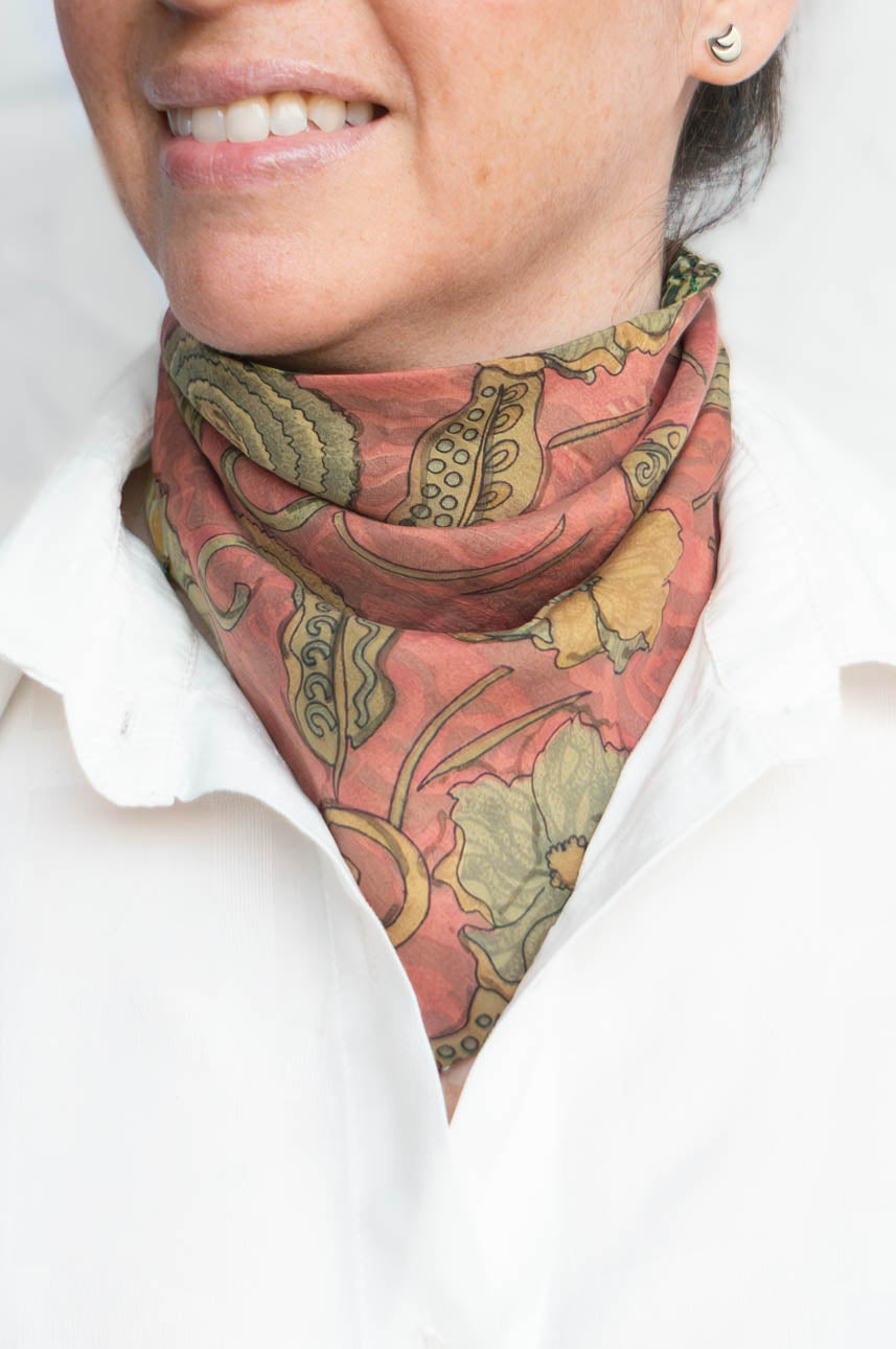 Pañoleta Seda Reversible Rosado/ Verde