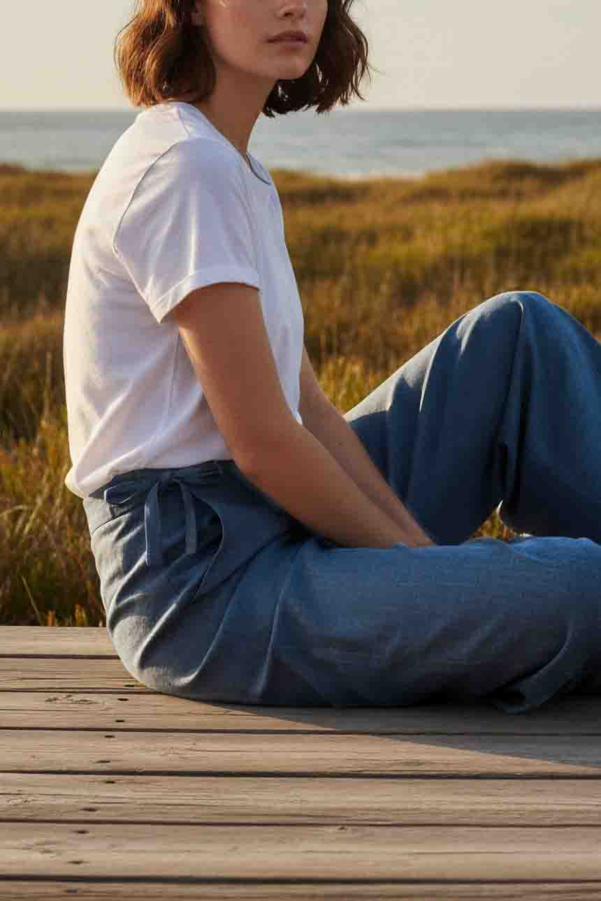 Pantalón Litoral Terciopelo 100% de Algodón Orgánico Turquesa