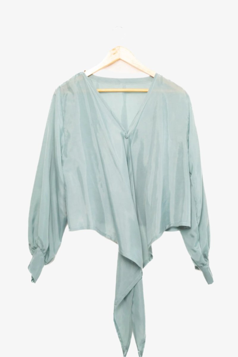 Está confeccionada en cupro, que es un tejido que se obtiene al procesar excedentes de la producción del algodón. Es muy suave y ayuda a regular la temperatura del cuerpo. Tiene una caída preciosa, no por nada le llaman la seda vegana. Amamos!