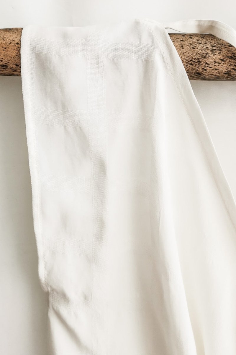 La colección celebra la belleza de lo móvil y adaptable, como en los movimientos sutiles de cada día. Cada diseño nace desde lo sensorial: el gesto de anudar con las manos, de sentir cómo la tela se desliza y responde al cuerpo, como una vela que se amarra y se deja guiar por el viento. Hecha con fibras naturales que se sienten suaves sobre la piel y le permiten respirar, cada pieza honra el trabajo artesanal y el tiempo de lo hecho con dedicación. Amarra es también ese instante al llegar a puerto: encontrar ese lugar seguro, donde descubres la comodidad y el relajo que acompañan cada versión de ti.